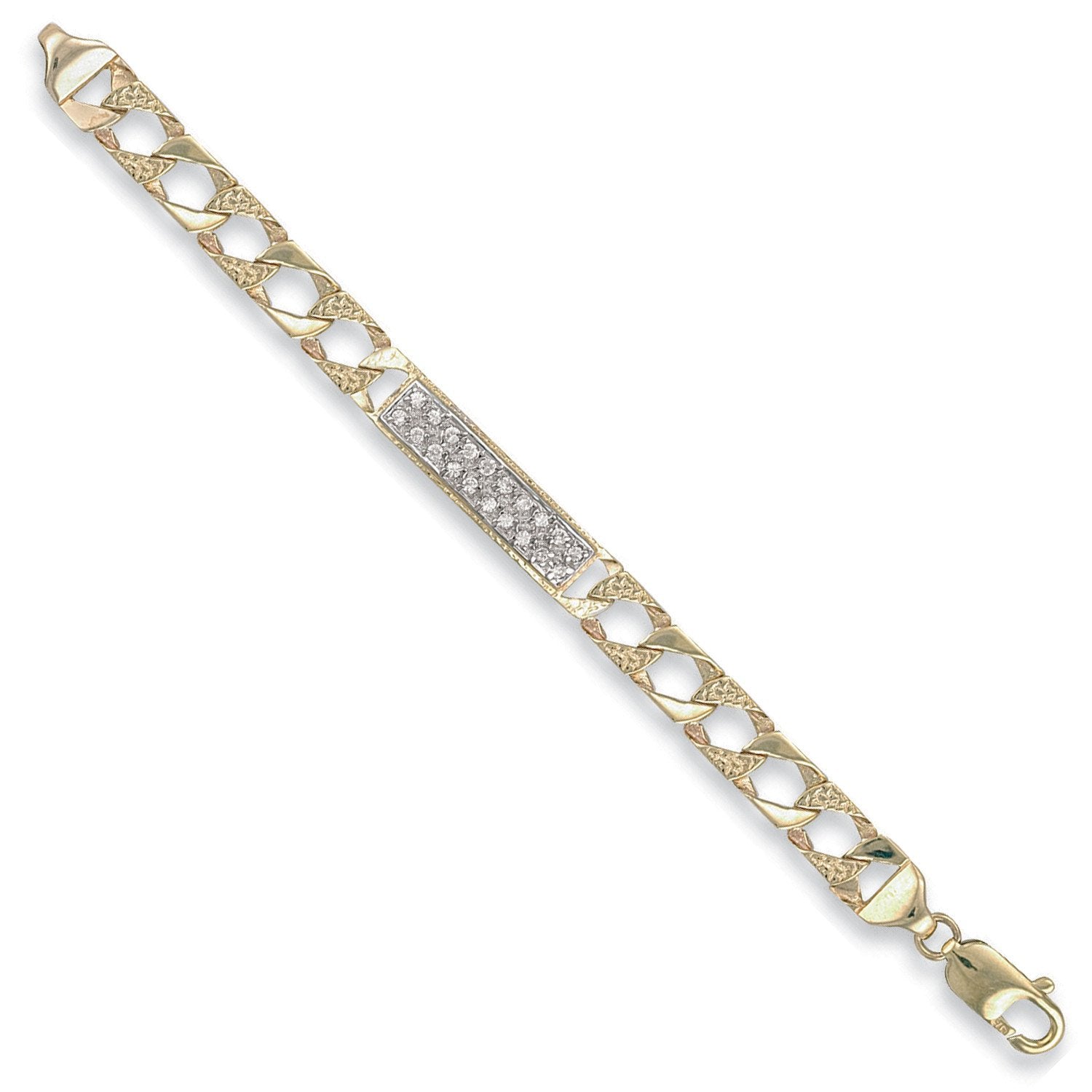 Yellow Gold Casted Curb Baby Cubic Zirconia Id Bracelet