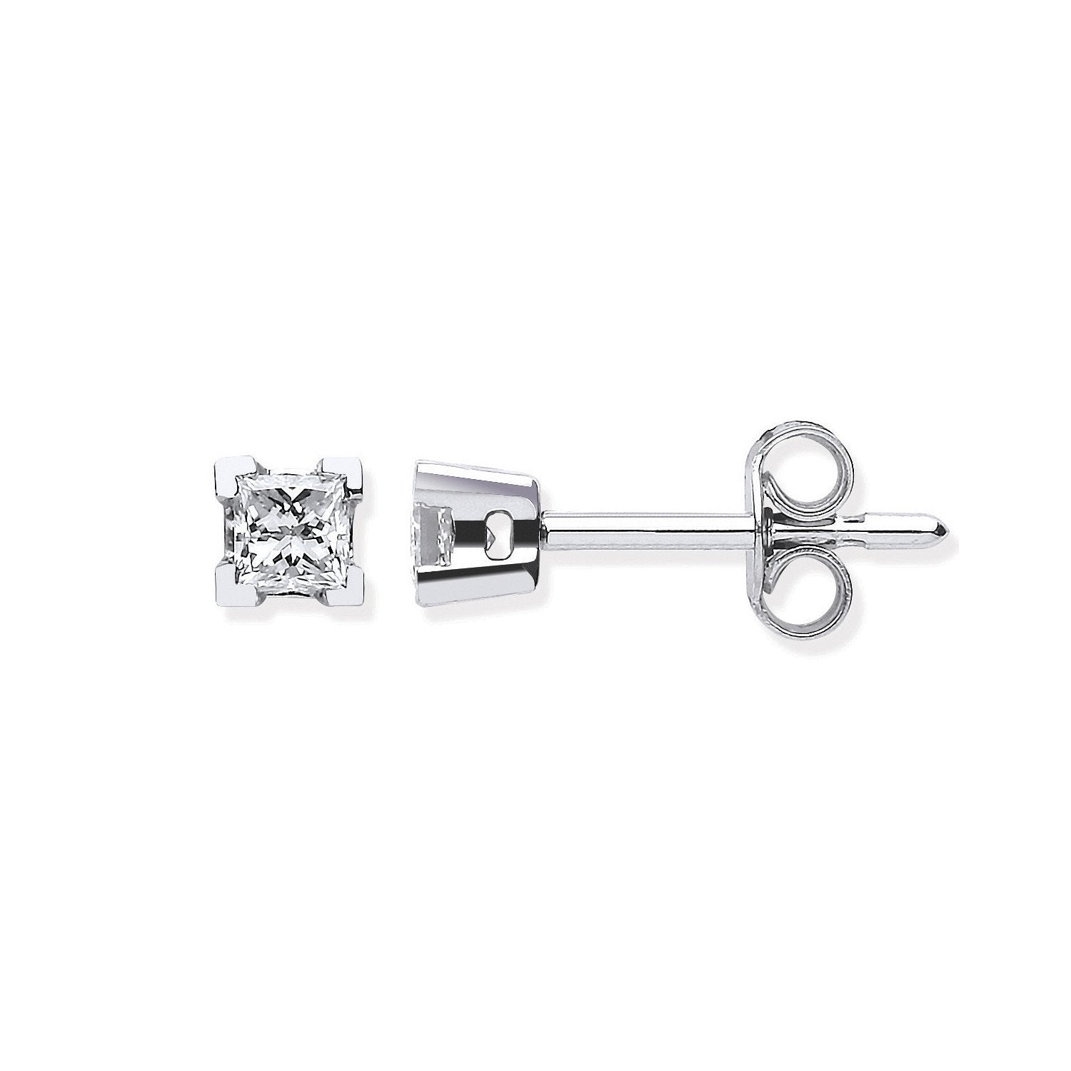 18ct White Gold 0.30ct Claw Set Princess Cut Diamond Stud Earrings