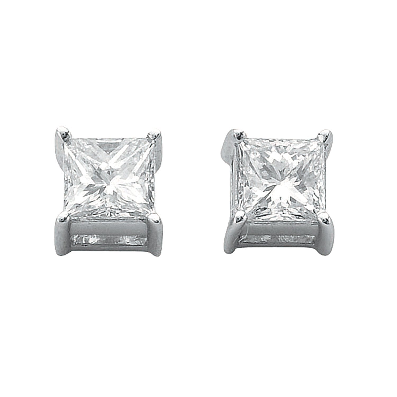 18ct White Gold 0.50ct Claw Set H/vs Princess Cut Diamond Stud Earrings