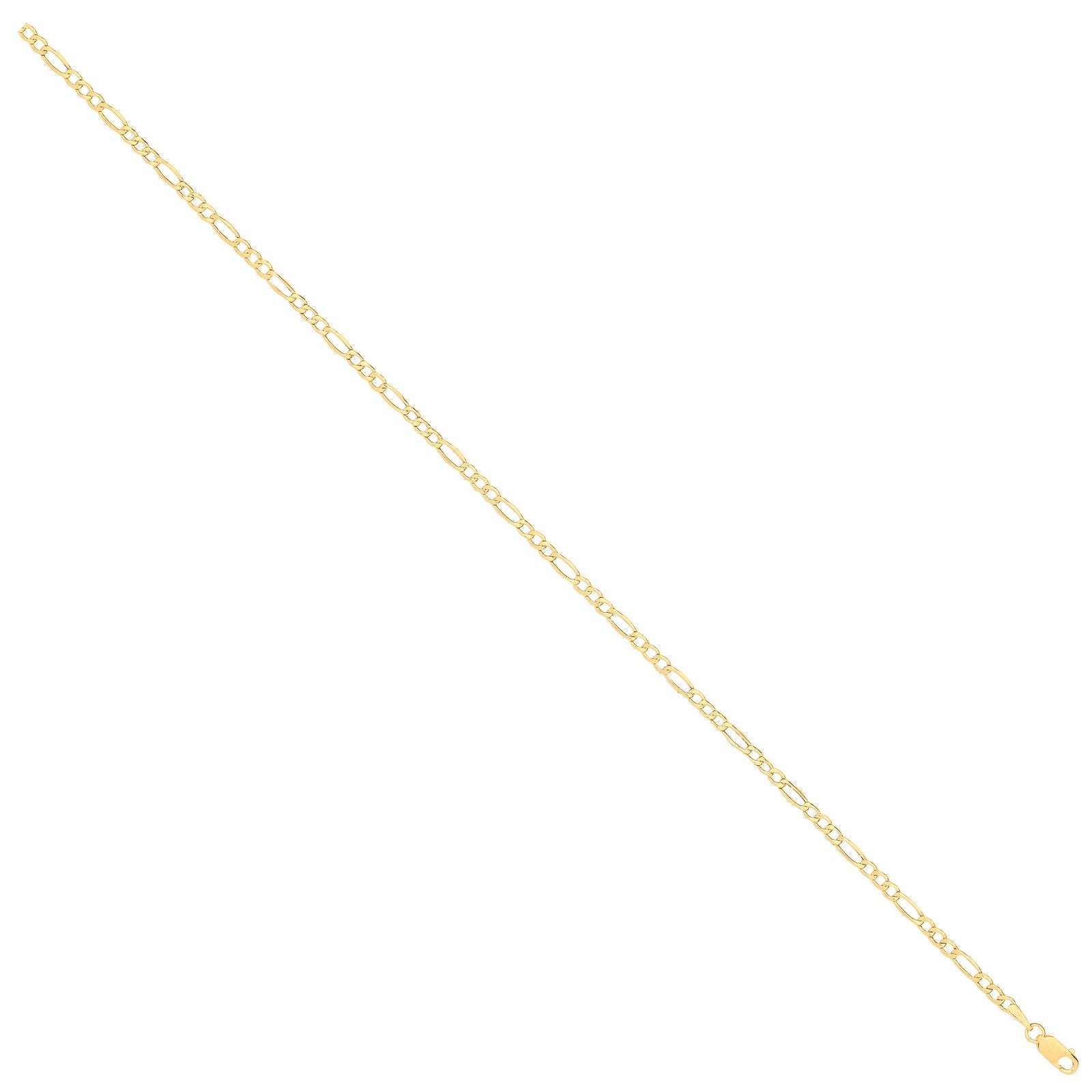 14ct Yellow Gold Hollow Beveled Figaro 2.6mm Chain