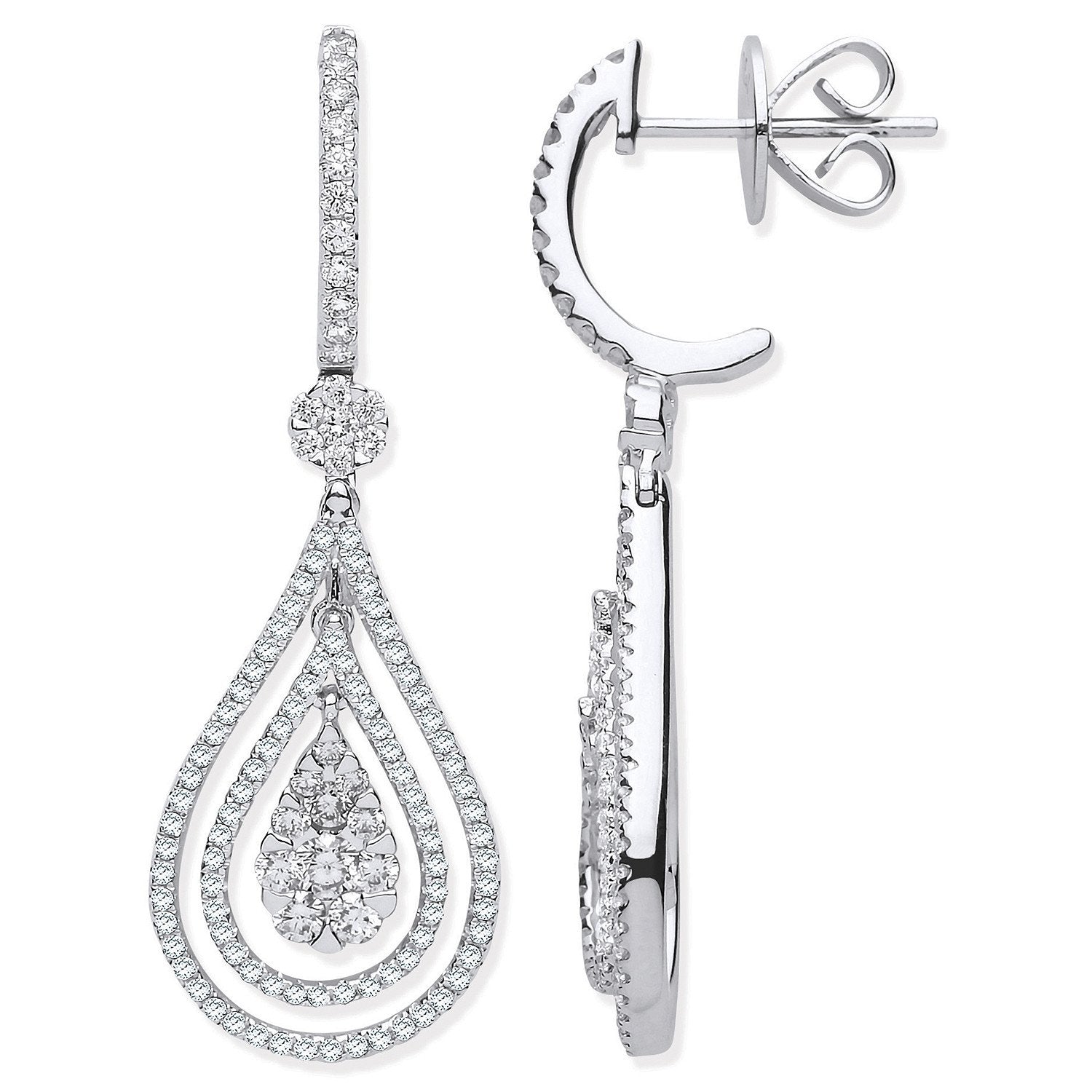 18ct White Gold 1.17ct Fancy Pear Shaped Grain Set Drop Earrings