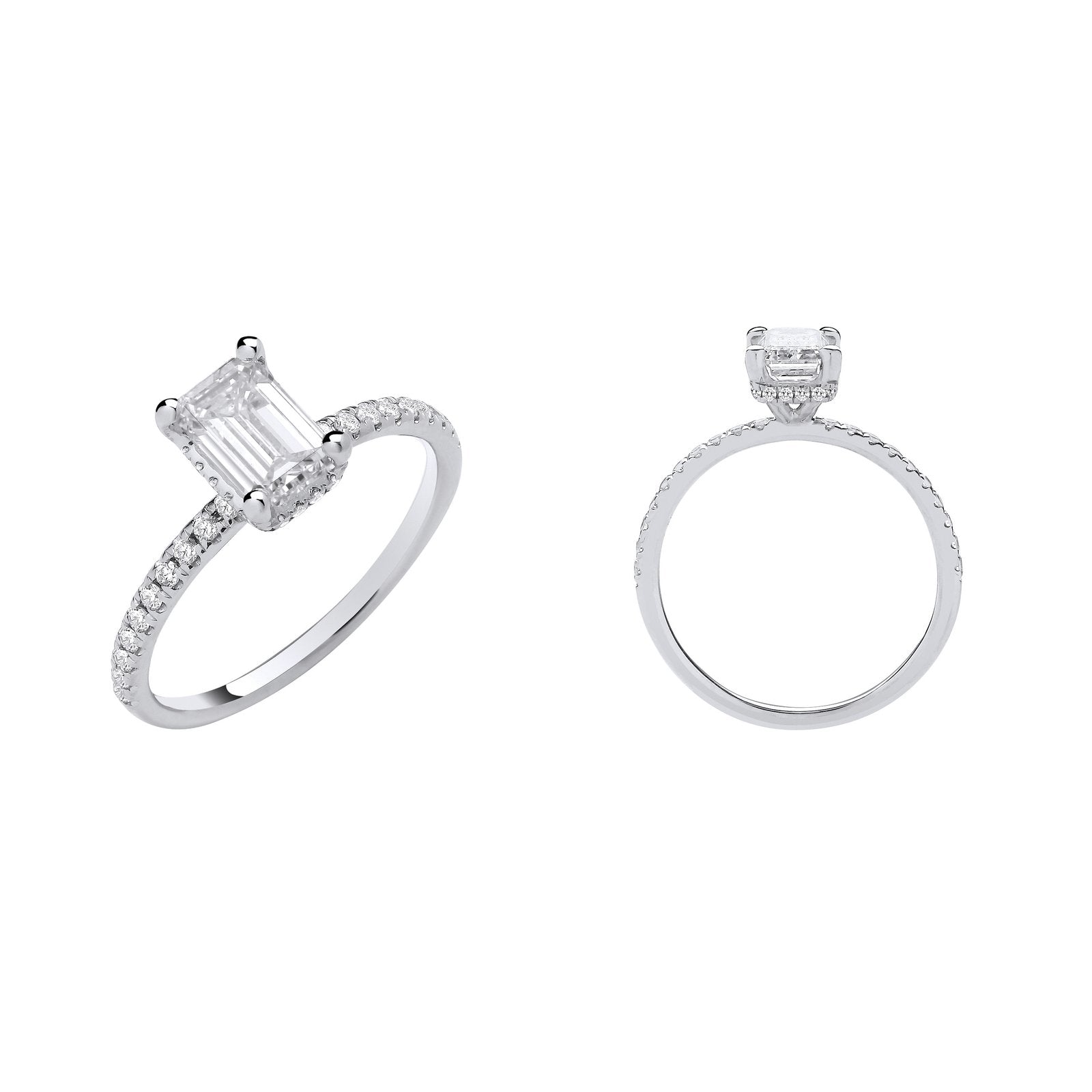 18ct White Gold 1.23ctw Emerald Cut Lab Grown Hidden Halo Diamond Ring Igi Certified