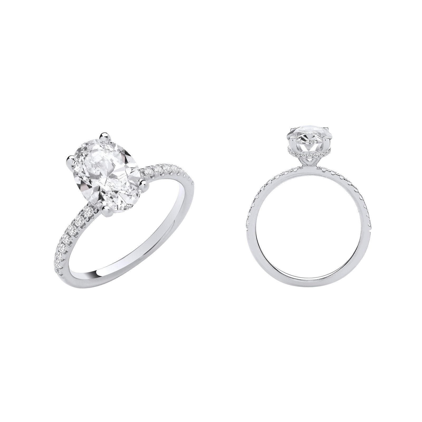 18ct White Gold 2.24ctw Oval Lab Grown Hidden Halo Diamond Ring Igi Certified