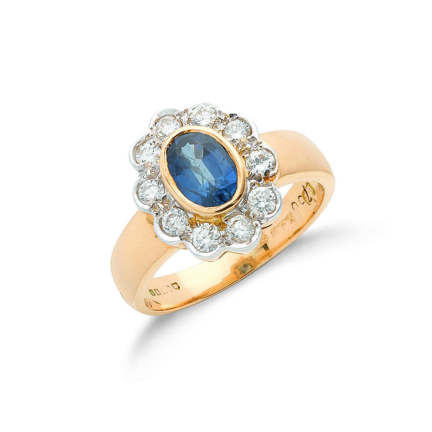 18ct Yellow Gold 0.35ct Diamond & 0.80ct Blue Sapphire Cluster Ring