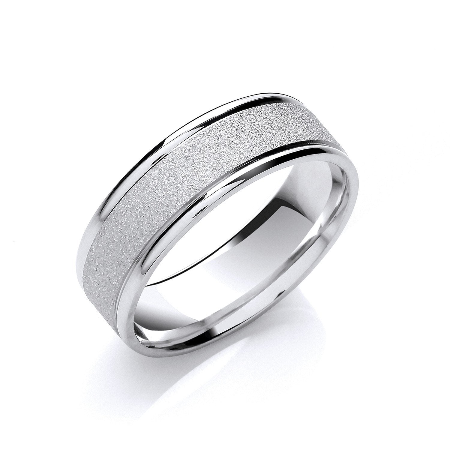7mm Flat Court Bevelled Edge Matt & Grooves Wedding Band - luxury watches London - Kensington jeweller | Imperial Time UK Ltd, Kensington