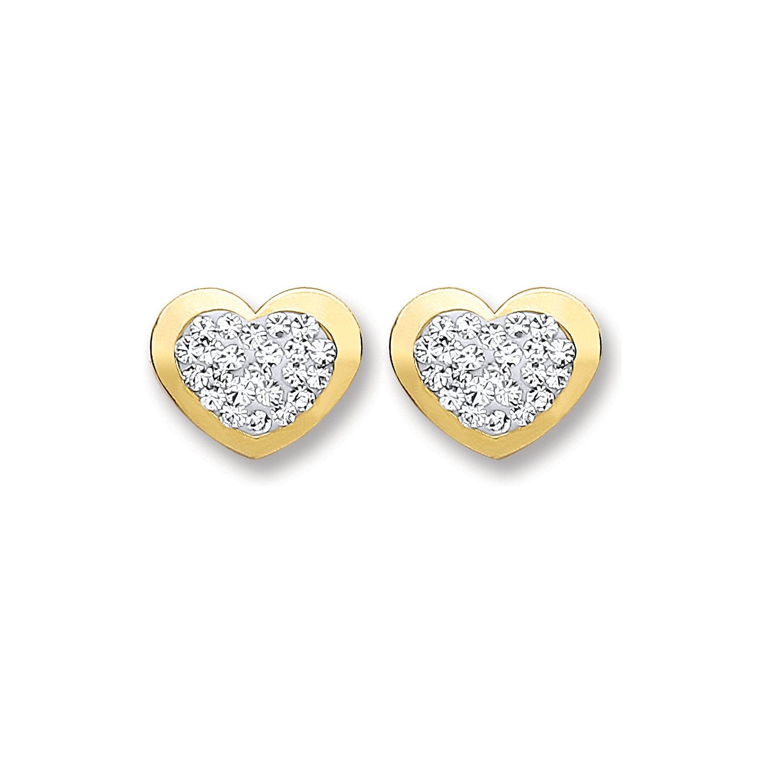 9ct Gold Heart Shape With Crystals Studs - luxury watches London - Kensington jeweller | Imperial Time UK Ltd, Kensington