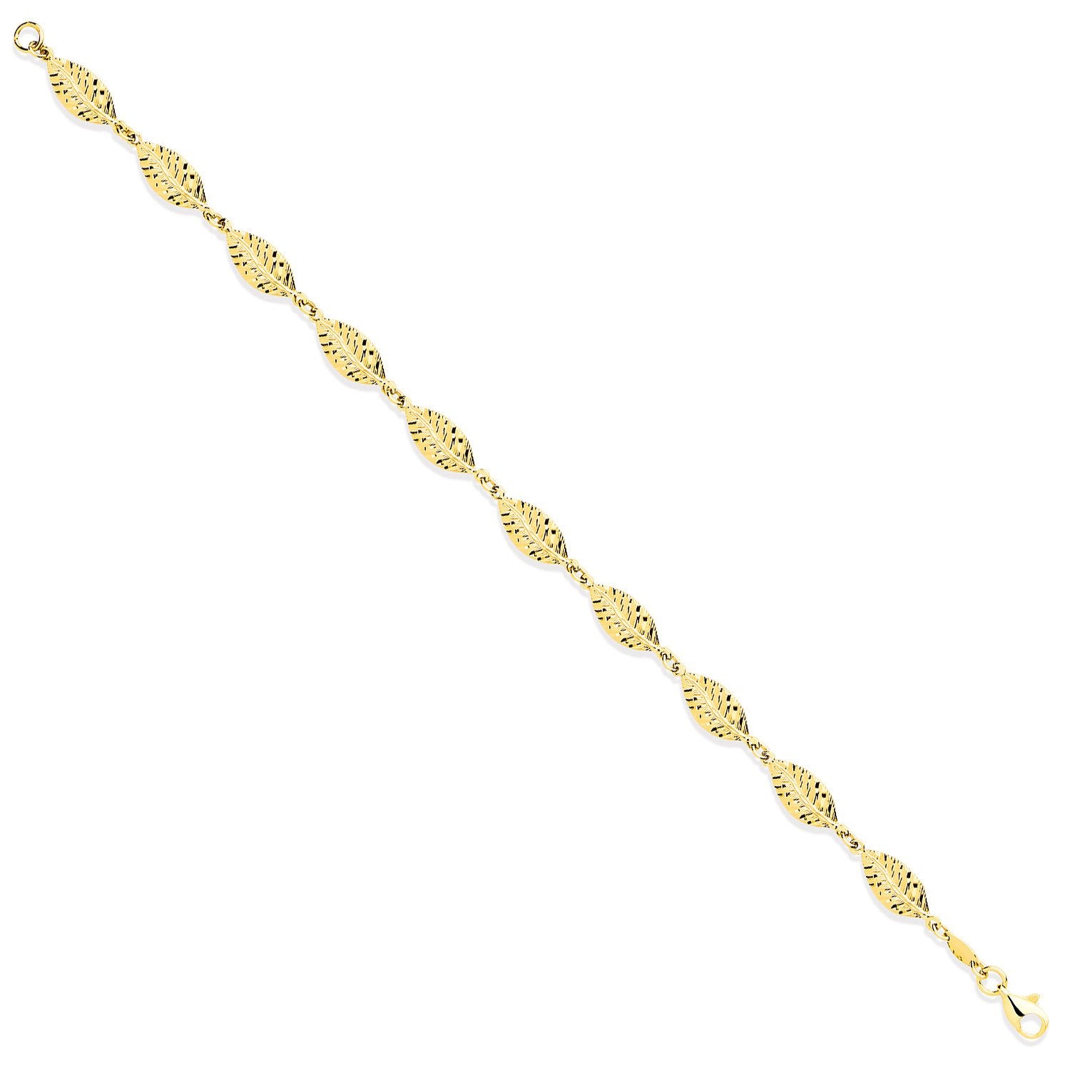 Yellow Gold 6mm Leaf Motif Ladies Bracelet