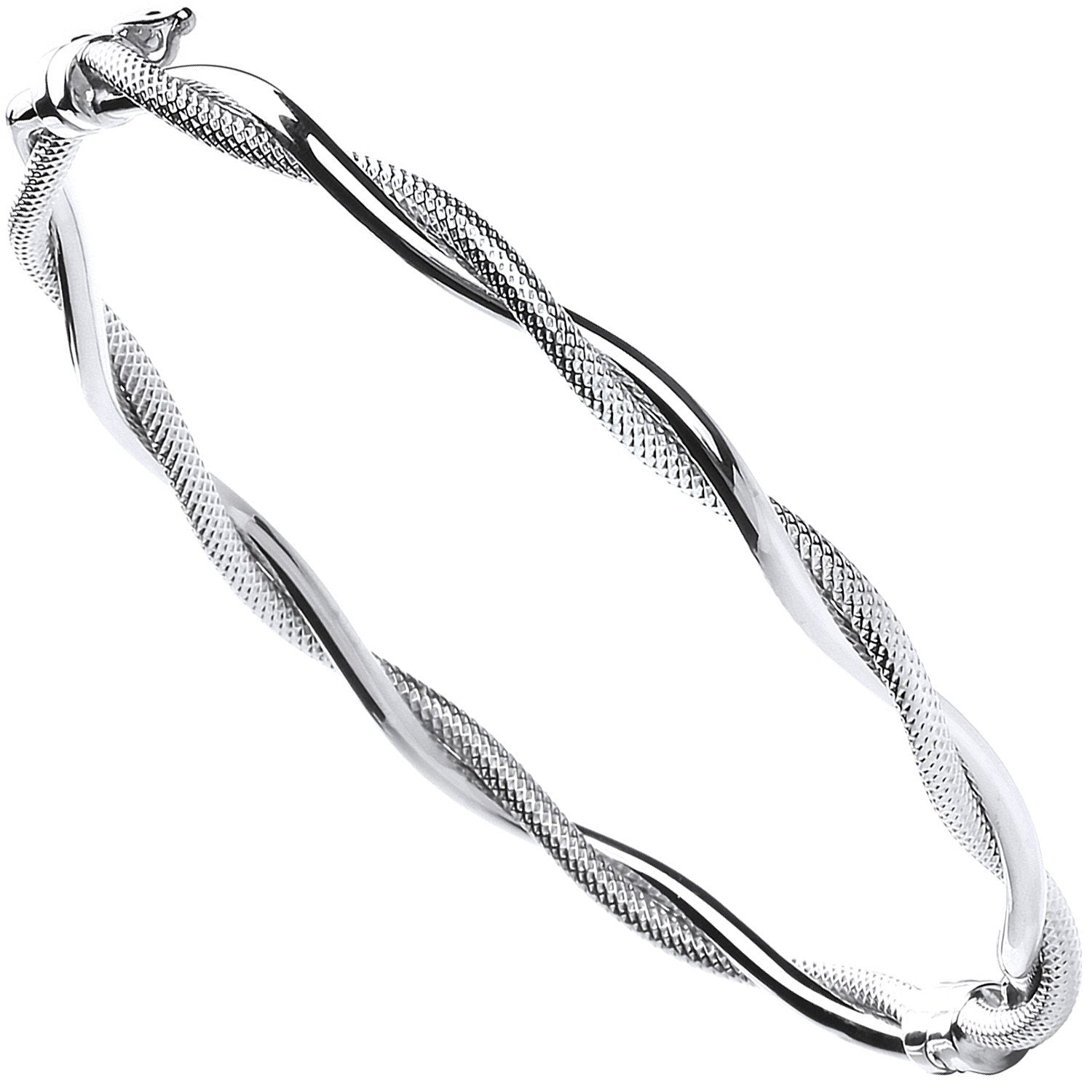 White Gold Ribbed & Plain Tubes Twisted Bangle