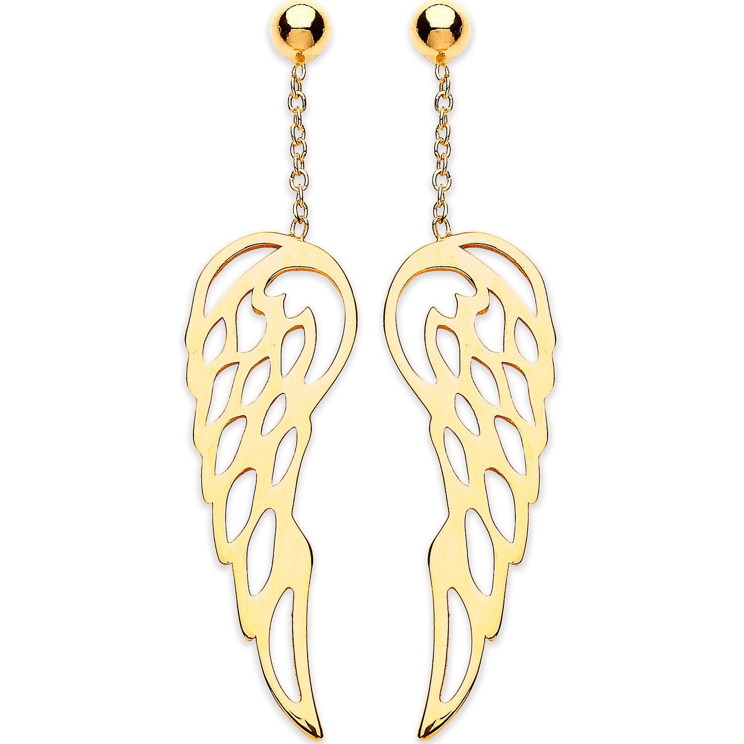 Yellow Gold Angel Wings Drop Earrings