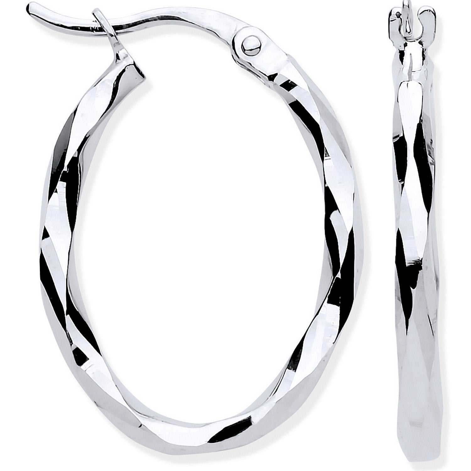 White Gold D/c Oval Hoop Earrings
