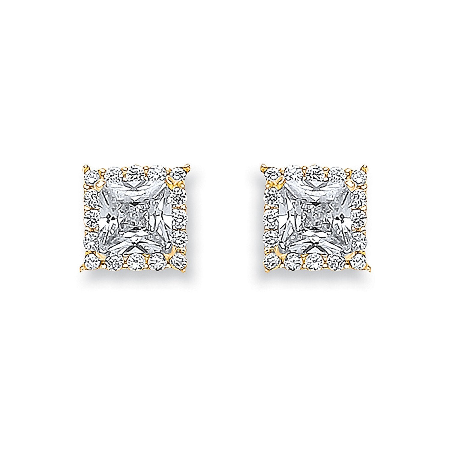 Yellow Gold Princess Cut Cubic Zirconia Centre Stud