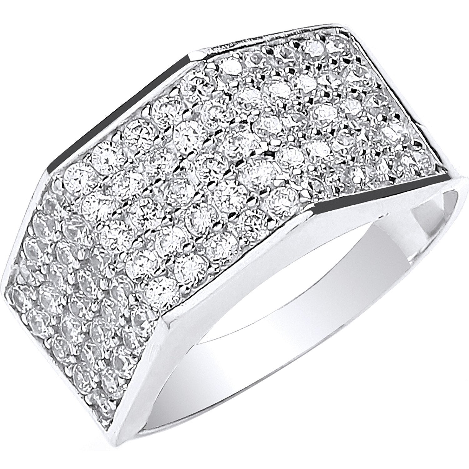 White Gold Cubic Zirconia Id Sides Mum Ring