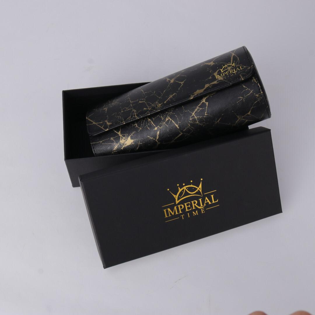 | Short Description | The 3 piece watch roll is an essential accessory to accompany and secure your watch collection. Each section is secured by separating barriers which are opened individually by safety release buttons meaning two watches can never touch! The Watch roll can be used for storage or transportation of your collection. |