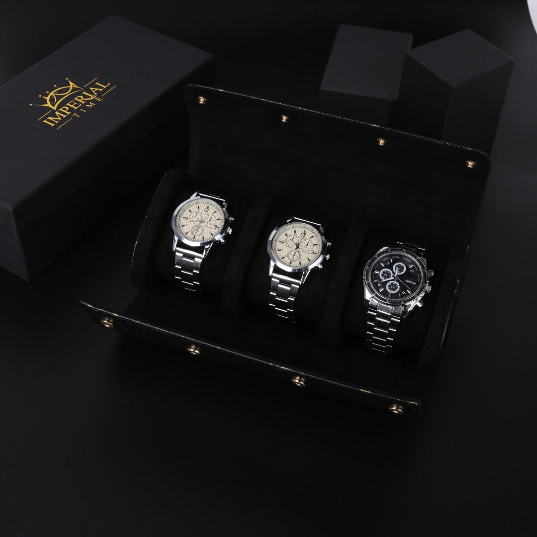 The 3 piece watch roll is an essential accessory to accompany and secure your watch collection.