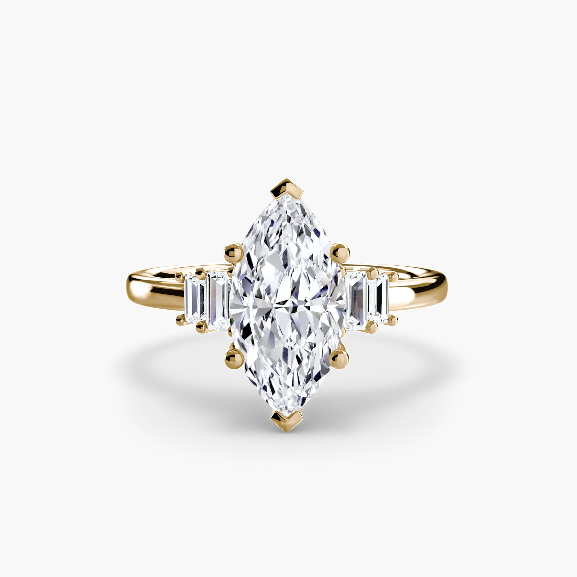 Baguette Accent Solitaire Engagement Ring 0.50ct–3.00ct with 0.17ct Side Stones in a Classic Wedding Style