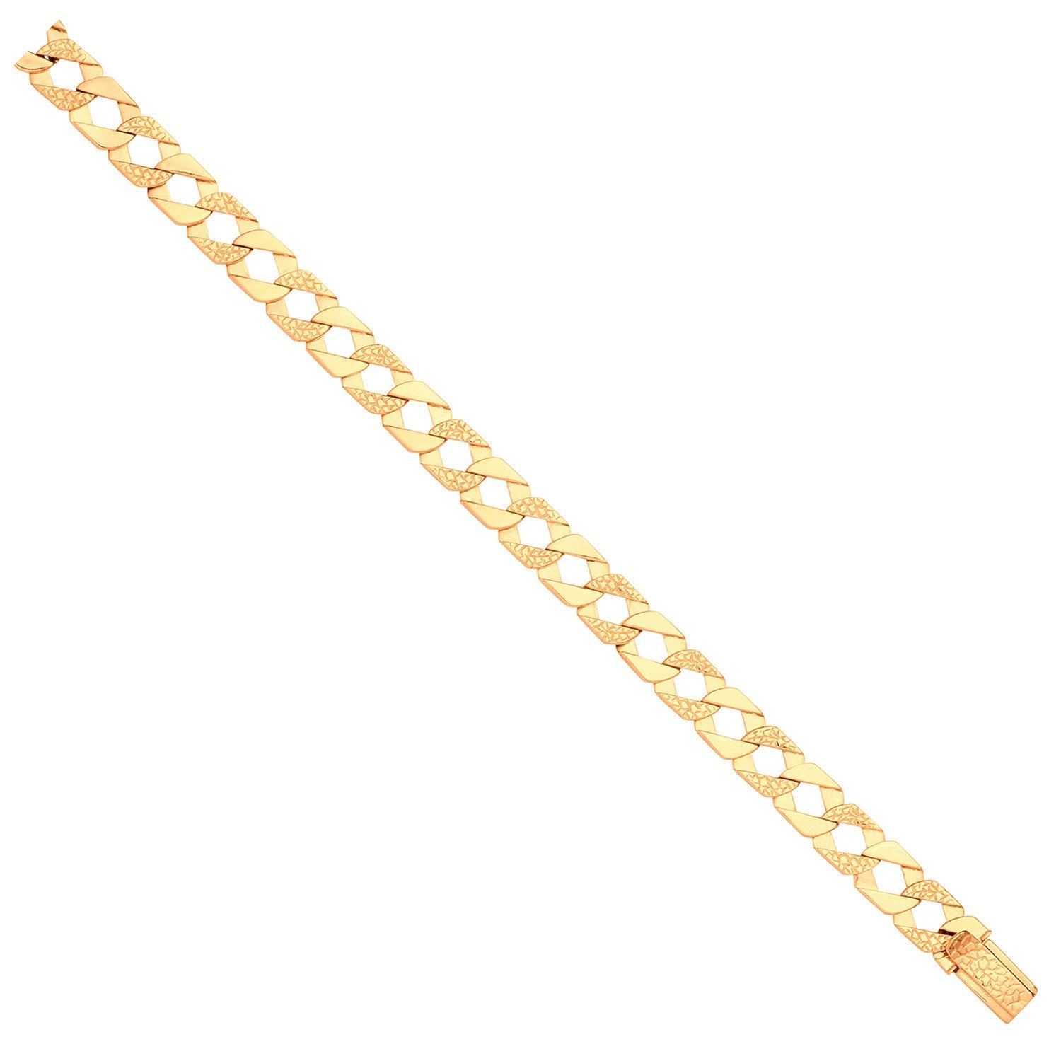 Yellow Gold Plain & Nugget 10.5mm Link Flat Curb Chain
