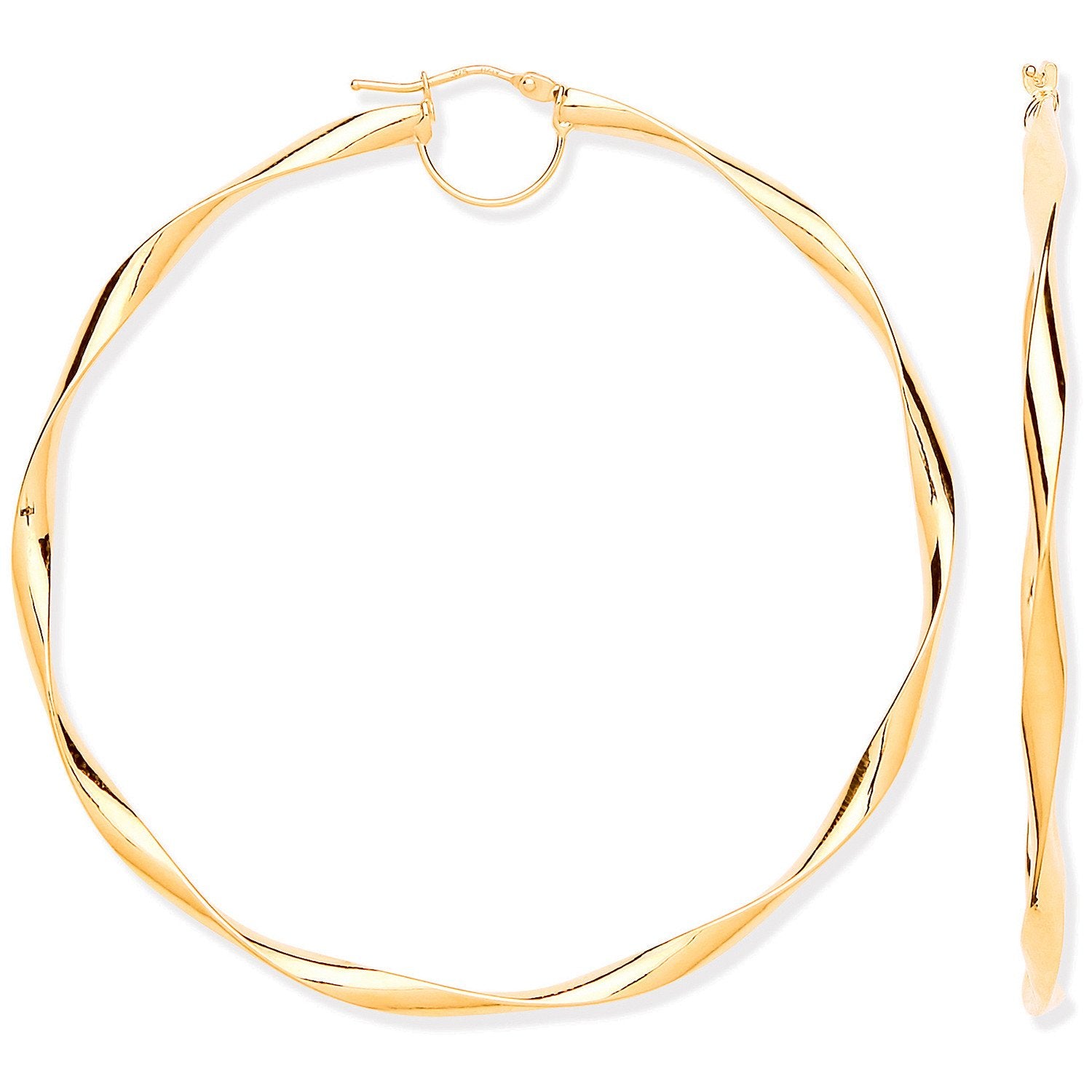 Yellow Gold 65mm Hollow Twist Hoop Earrings