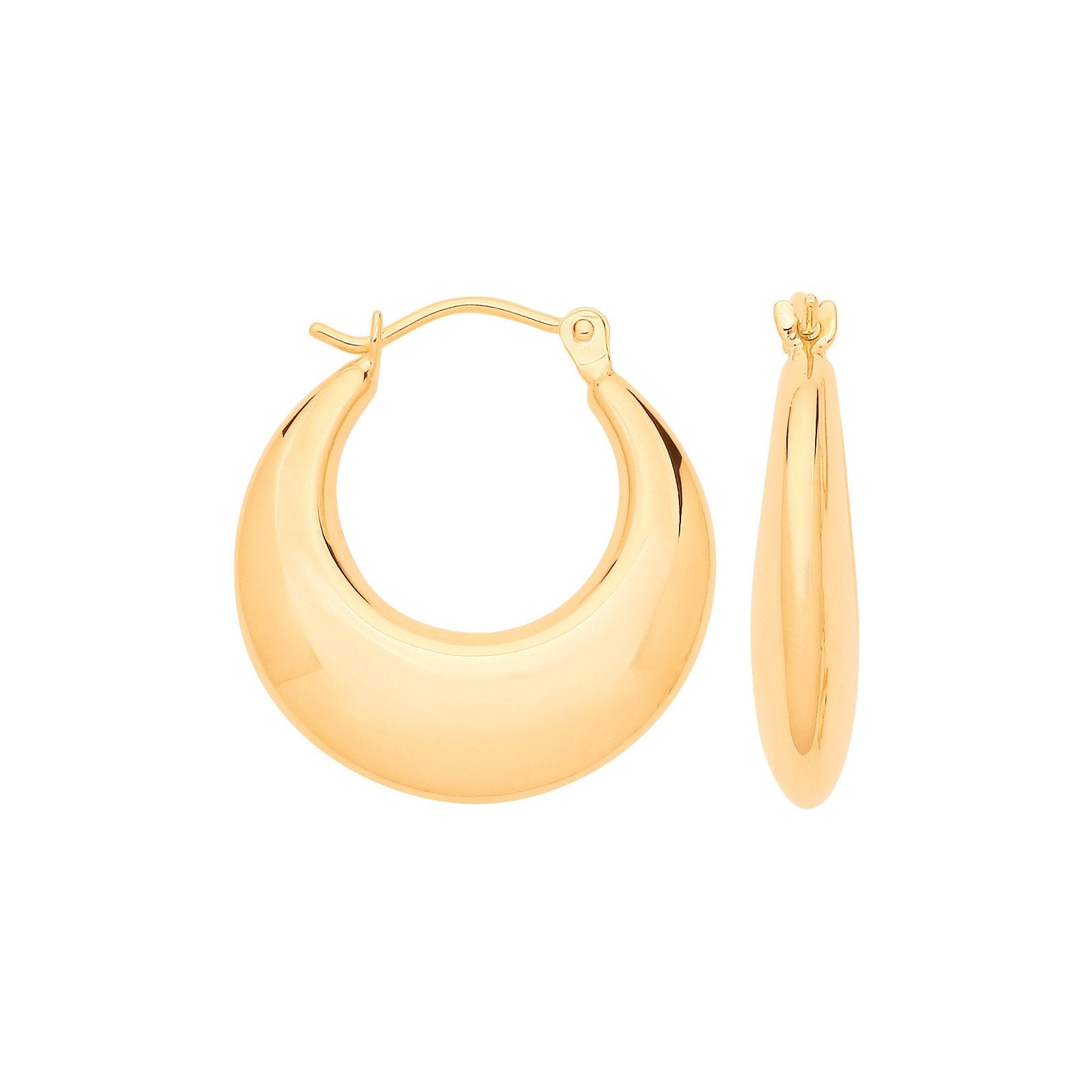 Yellow Gold Curved Creole Hollow Hoop Earrings