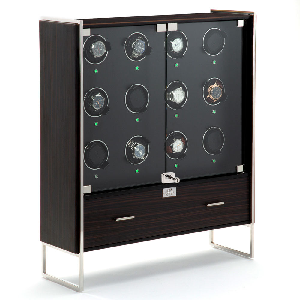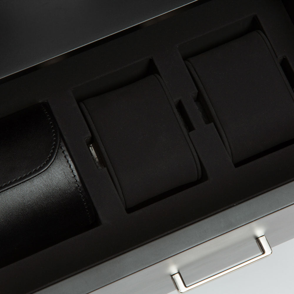 1834 is the culmination of 180+ years of the WOLF family’s focus on form and function. Melding these elements into a beautifully handcrafted wood and glass cabinet for displaying and safekeeping your watch collections. Protected under combination lock and key. Regent will keep perfectly wound and protected 12 watches, while the drawer accommodates additional watch storage for 7 watches and has a travel case for 3 that can also be used for bracelets and has a hidden inner compartment for those most precious things. 1834 Cabinets - serious luxury for the watch lover in us all.