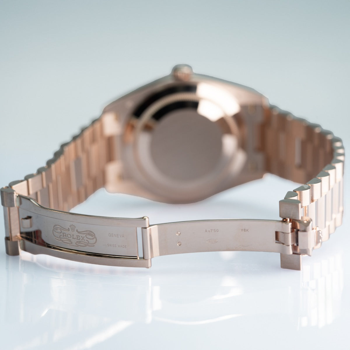 The Rolex Day-Date 40 is in unworn condition, ensuring that you receive a brand-new watch that is ready to be worn and enjoyed. With a 12-month seller warranty, you can have peace of mind knowing that your investment is protected. The manufacturer warranty from Rolex further adds to the value and reliability of this timepiece.