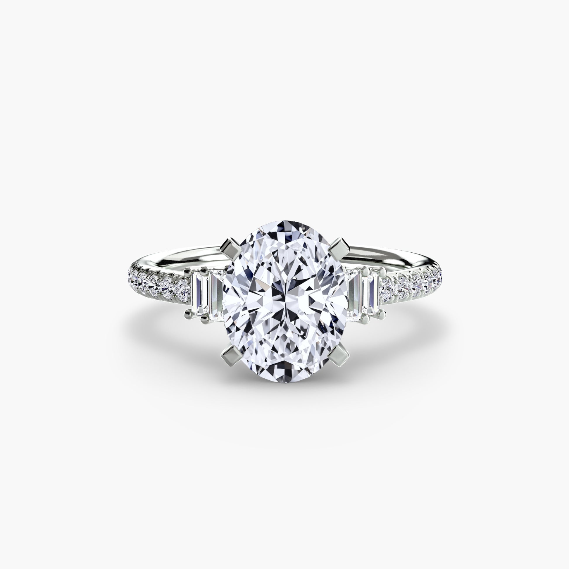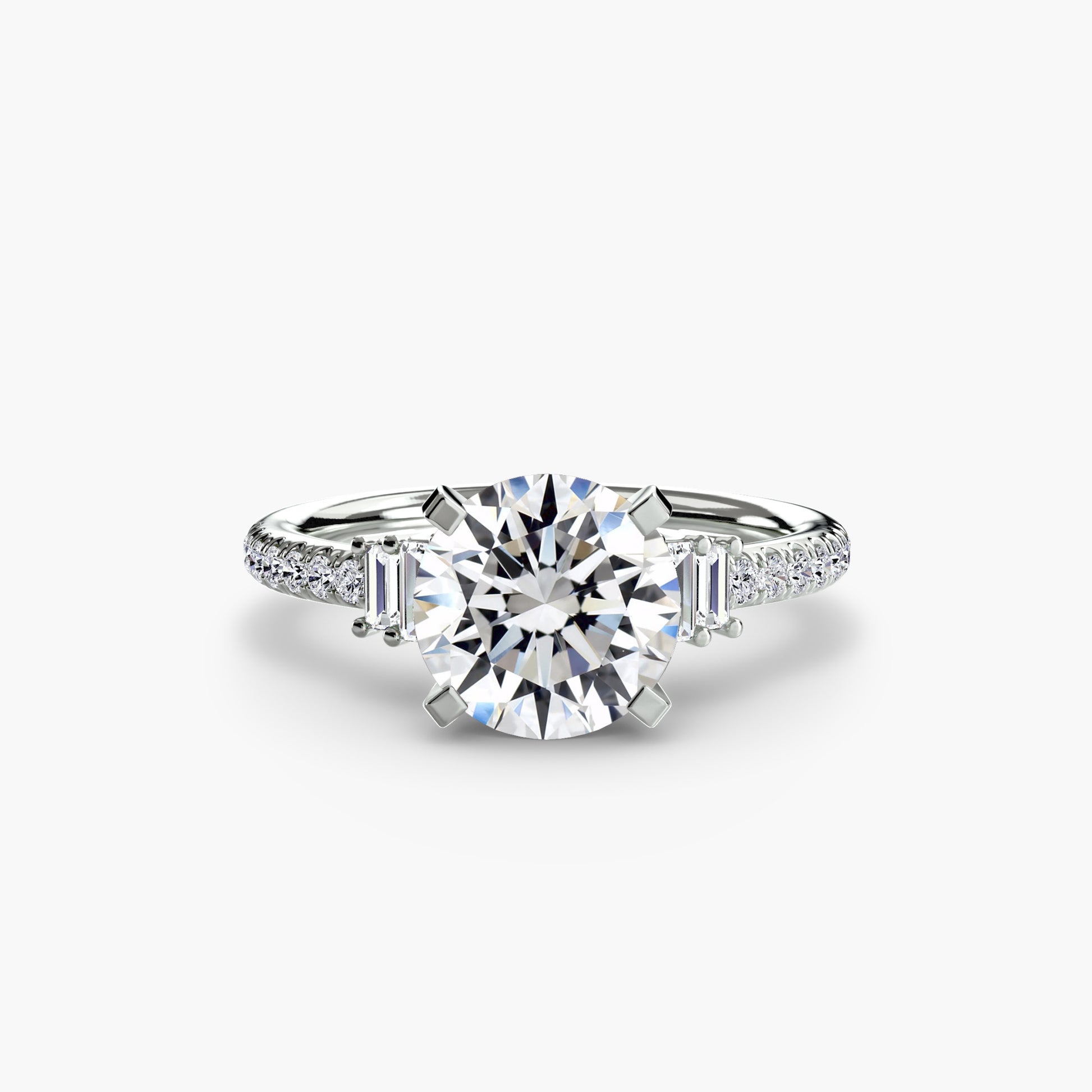 Solitaire Pavé Diamond-Band Engagement Ring 0.50ct–3.00ct with 0.23ct Side Stones for Women