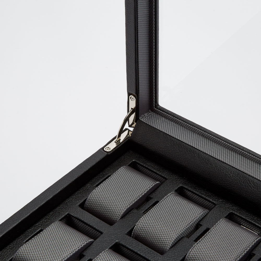 Rule over your collection with authority with a timeless Viceroy 10-piece watch box with storage. A modern classic that exudes an understated elegance, the Viceroy includes a smooth pebble exterior, silver textured silk lining, locking glass cover.